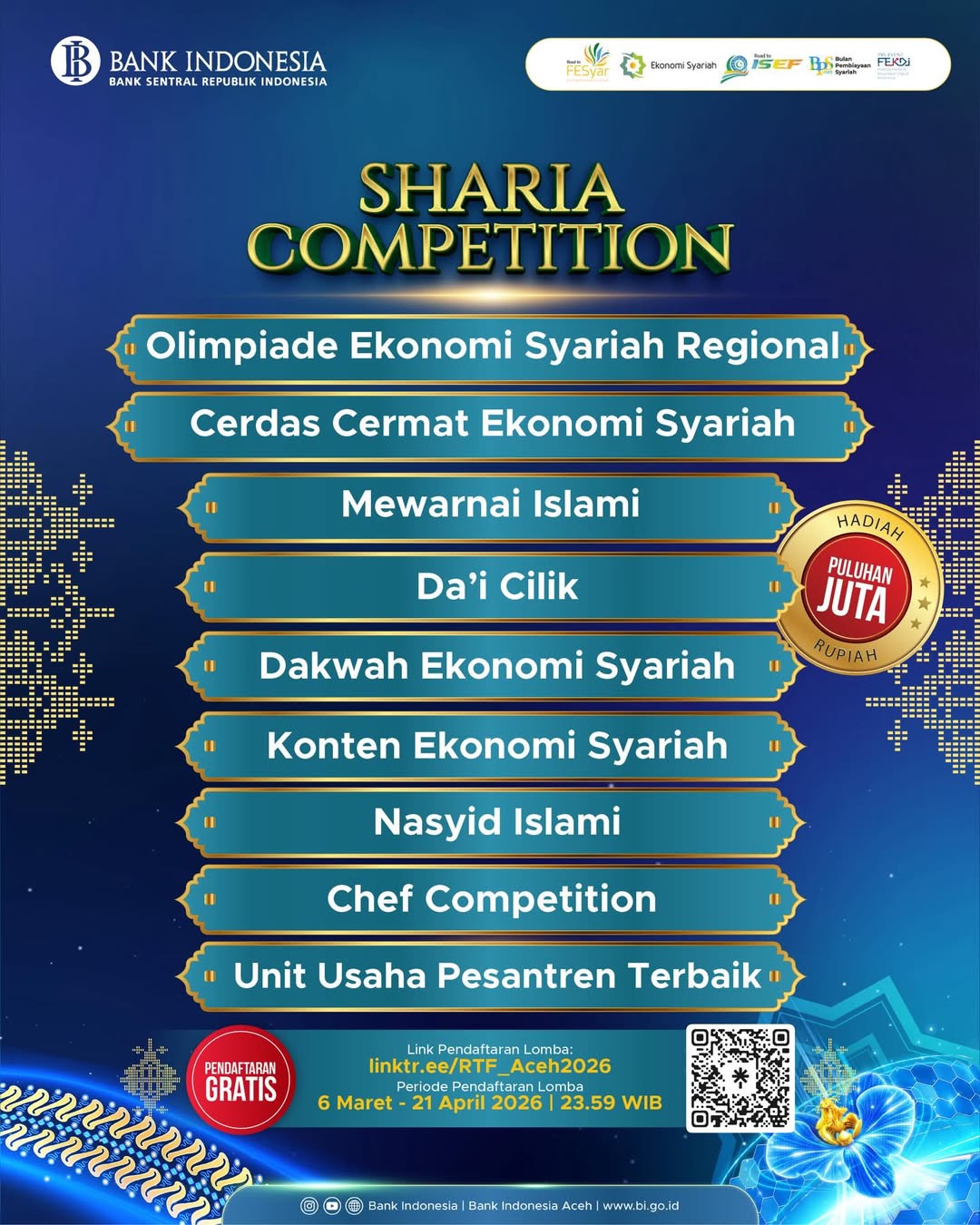 Assalamualaikum #SobatRupiah di Aceh! Road to Festival Ekonomi Syariah Sumatera 2026 wilayah kerja Kantor Perwakilan Bank Indonesia Provinsi Aceh akan segera dimulai! π