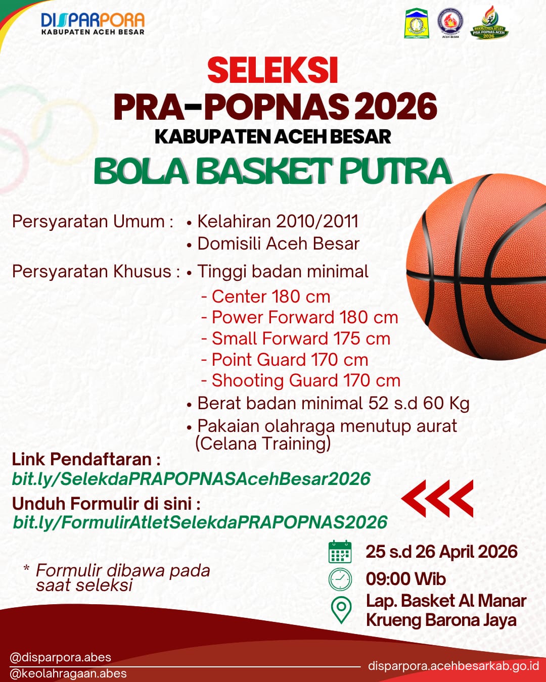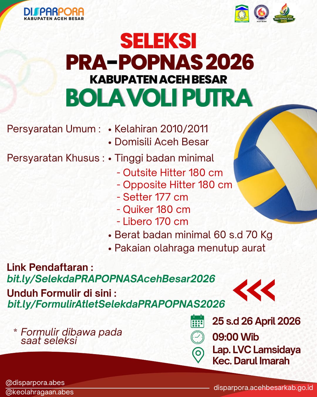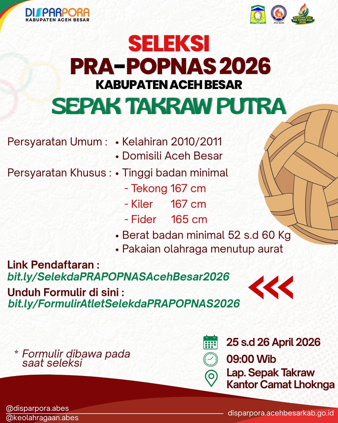 Link Pendaftaran : bit.ly/SelekdaPRAPOPNASAcehBesar2026