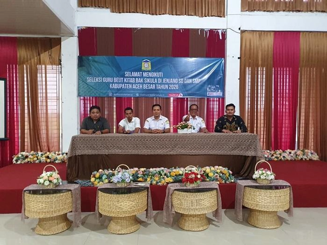 154 guru di Aceh Besar mengikuti seleksi Guru Beut Kitab Bak Sikula (BKBS) di Gedung Dekranasda Aceh Besar, Gampong Gani, Kecamatan Ingin Jaya. Seleksi ini merupakan tahap pertama yang berlangsung selama satu hari, dengan peserta berasal dari guru SPT yang akan mengikuti seleksi.