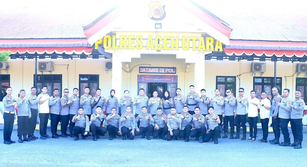 Kedatangan para mahasiswa tersebut disambut Kapolres Aceh Utara AKBP Trie Aprianto, SH, MH, bersama para Pejabat Utama Polres Aceh Utara, Selasa (10/2/2026), di Mapolres setempat.