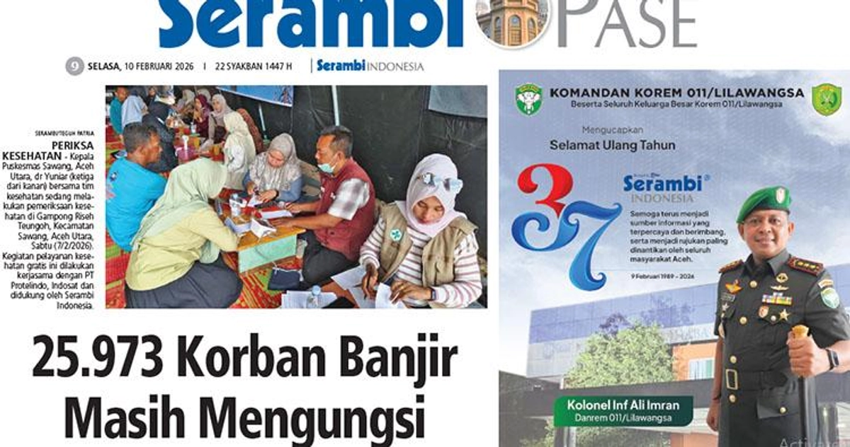 Berdasarkan data yang diperoleh Serambi, Ahad (8/2/2026), hingga saat ini tercatat sebanyak 6.886 kepala keluarga (KK) atau 25.973 jiwa masih mengungsi di 119 titik pengungsian yang tersebar di sejumlah kecamatan.