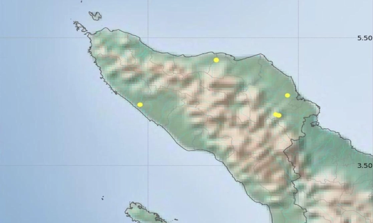 - 5 titik panas terlokasi di dalam kawasan Kecamatan Sawang di Aceh Utara.