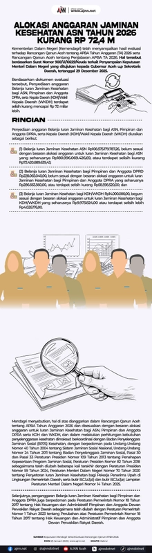 - Prioritas anggaran: Pemerintah Aceh akan memprioritaskan alokasi anggaran untuk jaminan kesehatan ASN dalam anggaran tahun 2026.