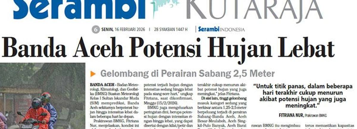 Banda Aceh dan sekitarnya berpotensi mengalami hujan lebat dalam beberapa hari ke depan. Badan Meteorologi, Klimatologi, dan Geofisika (BMKG) Stasiun Meteorologi Kelas I Sultan Iskandar Muda (SIM) memperingatkan bahwa kondisi ini disebabkan oleh aktivitas gelombang equatorial rossby dan Madden-Julian Oscillation (MJO) di fase II.