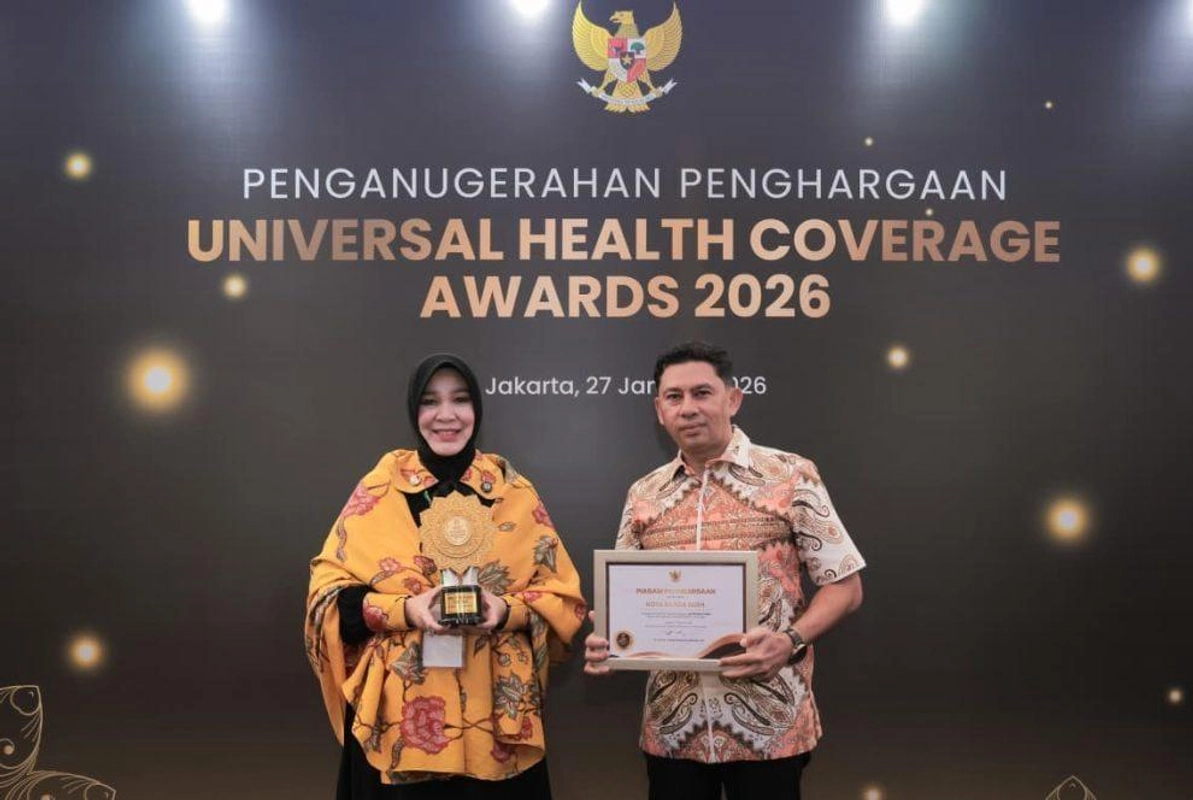 Kota Banda Aceh meraih Penghargaan Universal Health Coverage 2026 dengan kategori utama. Penghargaan ini diberikan oleh Menteri Koordinator Pemberdayaan Masyarakat RI, Muhaimin Iskandar, kepada Wali Kota Banda Aceh, Illiza Sa'aduddin Djamal, dalam acara penganugerahan di Jakarta, Selasa (27/1/2026).