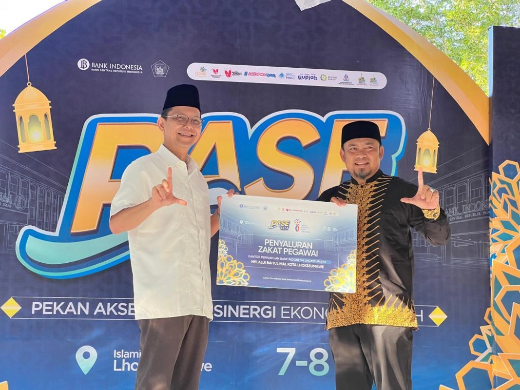 Bank Indonesia Lhokseumawe menyerahkan zakat harta karyawan senilai Rp 27.450.000 kepada Baitul Mal Kota Lhokseumawe. Penyerahan ini dilakukan dalam acara puncak Pase Fest di Plataran Masjid Islamic Center, Minggu (8/3/2026). Dana zakat ini ditujukan untuk membantu masyarakat kurang mampu di Kota Lhokseumawe melalui berbagai program pemberdayaan ekonomi, pendidikan, dan bantuan sosial.