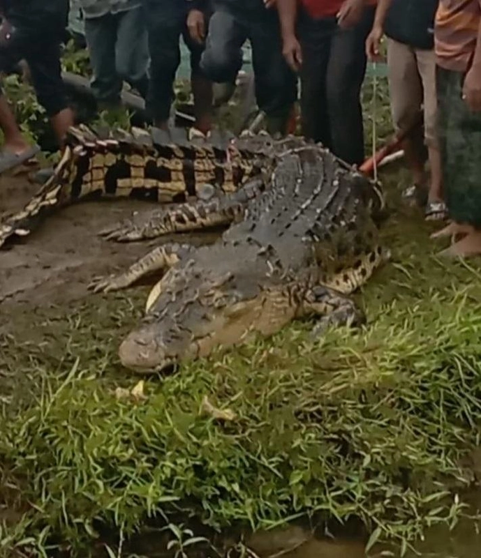 Buaya berukuran sekitar 4 meter yang memangsa pencari kerang di Desa Bulu Hadek, Kecamatan Teluk Dalam, Simeulue, berhasil ditangkap warga pada Senin (16/2/2026). Korban, Jusmitawati (36), ditemukan potongan tubuhnya di dalam perut buaya setelah buaya tersebut dievakuasi dan dibelah oleh warga.