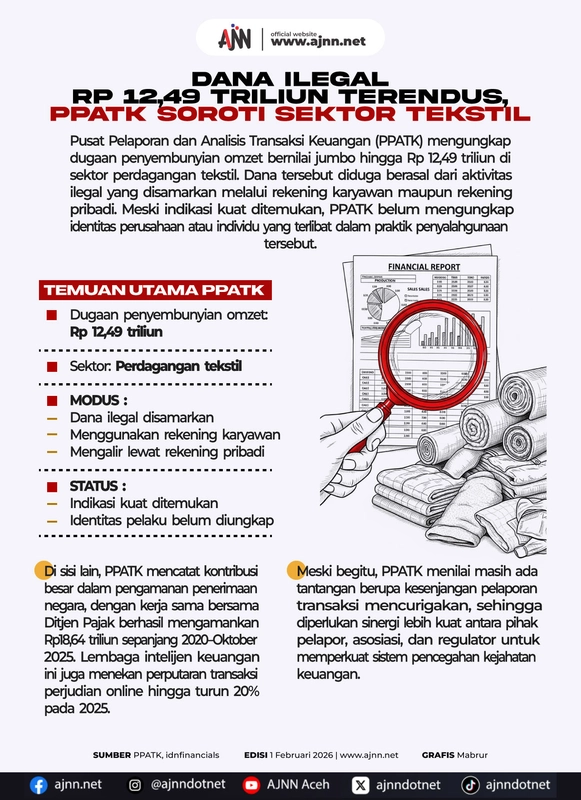 PPATK mengungkap dana ilegal sebesar Rp 12,49 triliun di sektor tekstil, termasuk di Aceh. Penyidikan ini penting untuk mengungkap korupsi dan memastikan keamanan ekonomi daerah.