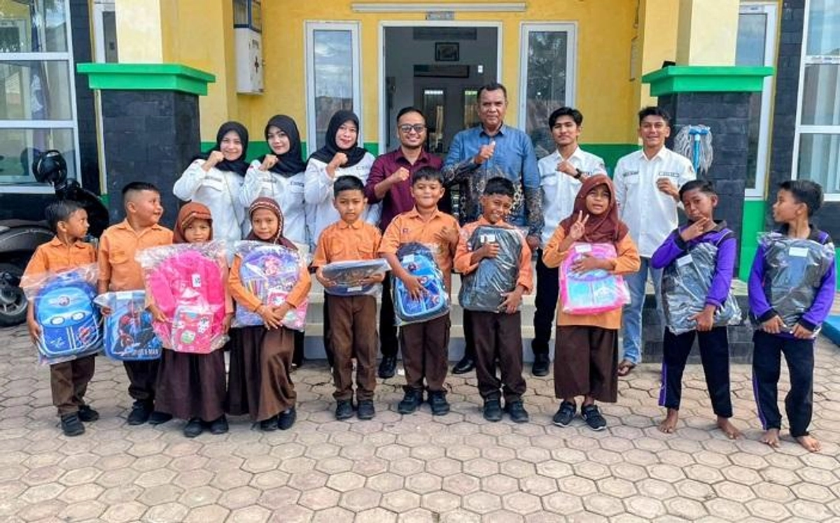- 10 murid yatim dan piatu di SDN 3 Suak Setia menerima bantuan perlengkapan sekolah.