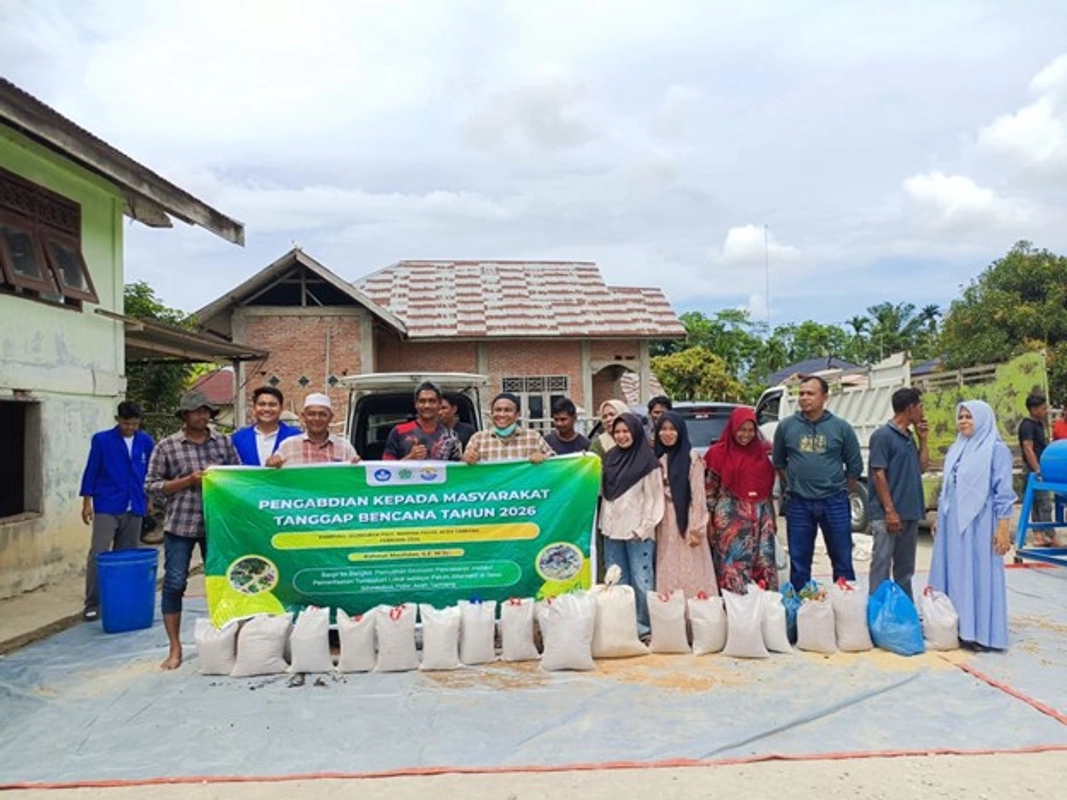 Pascabanjir yang melanda Desa Seuneubok Pidie, Kecamatan Manyak Payed, Kabupaten Aceh Tamiang, roda perekonomian masyarakat sempat tersendat. Lahan pertanian terdampak, aktivitas usaha terganggu, dan biaya produksi peternakan meningkat. Menjawab kondisi tersebut, tim dosen Fakultas Ekonomi dan Bisnis Universitas Samudra melaksanakan Kegiatan Pengabdian Kepada Masyarakat (PKM) Tanggap Bencana Tahun 2026 bertajuk “Banjir ke Bangkit: Pemulihan Ekonomi Pascabanjir melalui Pemanfaatan Tumbuhan Lokal sebagai Pakan Alternatif.”
