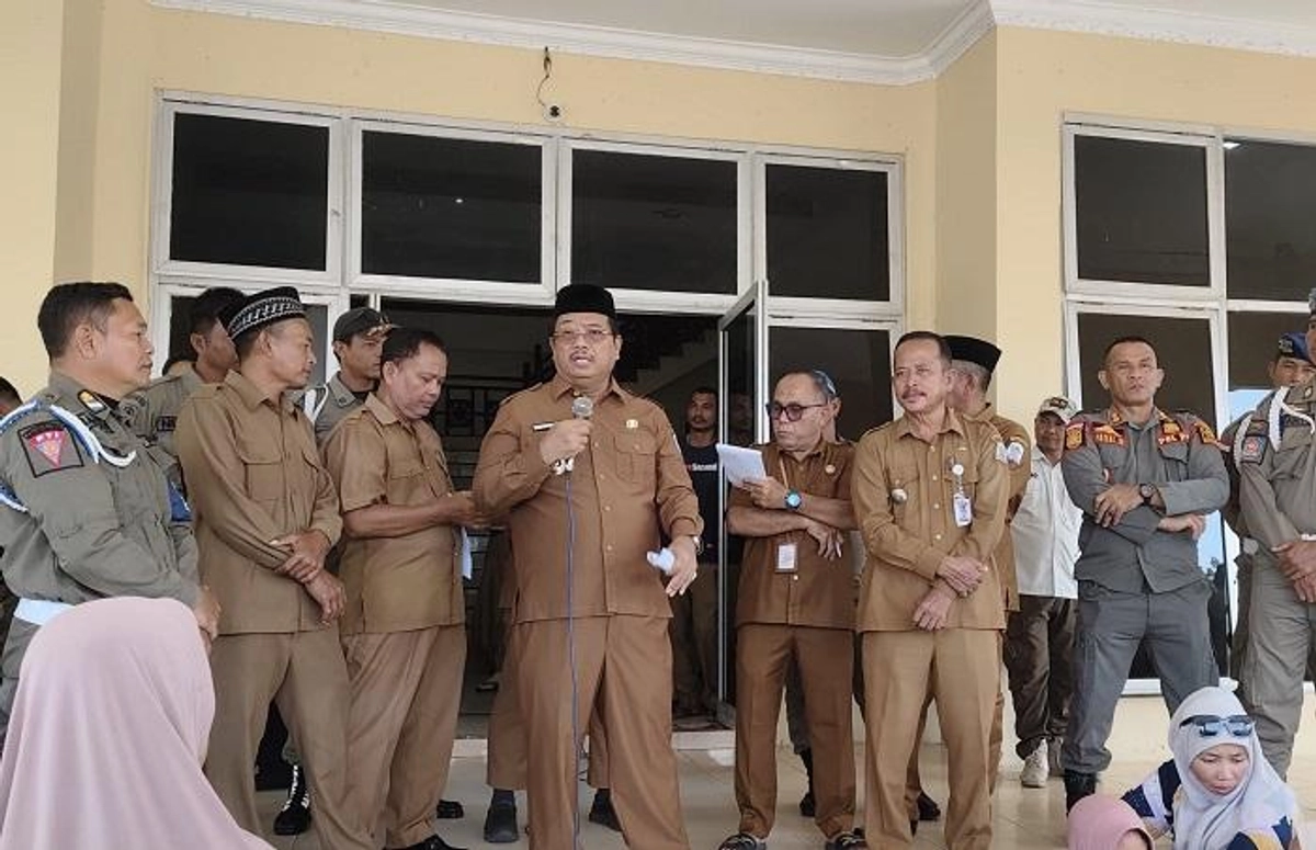 Warga Desa Ujung Bawang dan Cingkam, Kecamatan Singkil dan Gunung Meriah, Aceh Singkil, mendatangi Kantor Bupati Aceh Singkil pada Senin (9/3/2026). Mereka mempertanyakan penurunan drastis jumlah penerima bantuan rehabilitasi rumah pasca banjir November 2025. Dari 204 kepala keluarga (KK) menjadi 61 KK di Desa Ujung Bawang, dan dari 128 KK menjadi 14 KK di Desa Cingkam.