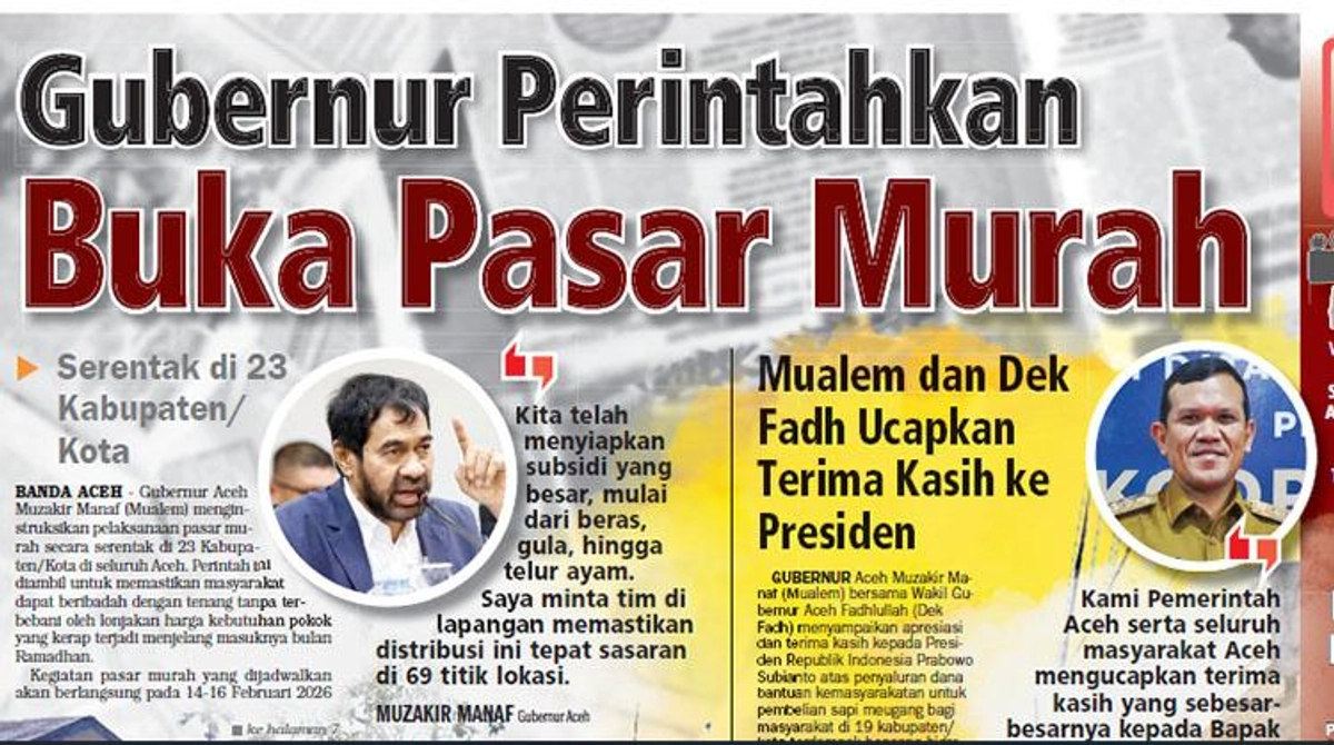 Pasar murah yang dijadwalkan akan berlangsung pada 14-16 Februari 2026 ini, juga menjadi bentuk respons cepat Pemerintah Aceh dalam menjaga stabilitas pangan pascabencana banjir dan tanah longsor yang melanda beberapa wilayah Tanah Rencong.