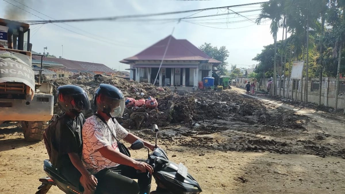 Hampir dua bulan pascabanjir bandang, lumpur dan debu masih menyelimuti Aceh Tamiang. Tumpukan lumpur setinggi orang dewasa masih terlihat di depan kantor Bawaslu Tamiang, sementara debu tebal mengganggu jarak pandang pengendara di malam hari.