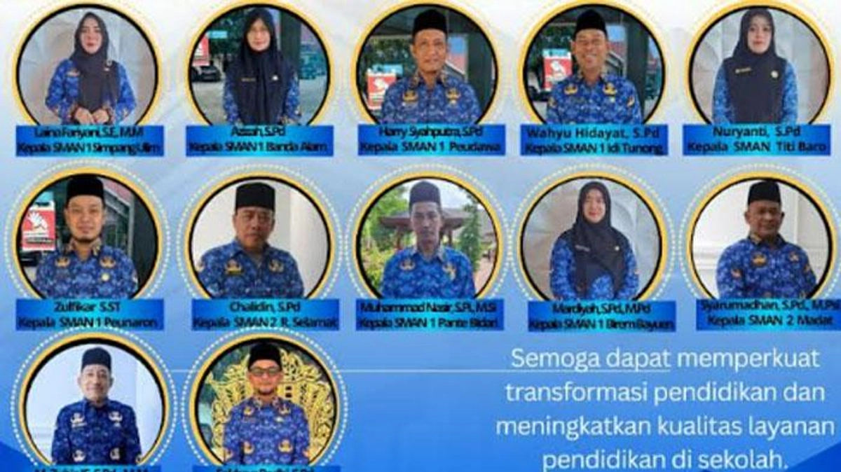 Dari total 201 kepala sekolah yang dilantik, 17 di antaranya merupakan kepala SMA dan SMK di Kabupaten Aceh Timur. Kepala Cabang Dinas Pendidikan Wilayah Aceh Timur, Rahmatsah Putra, menyampaikan ucapan selamat kepada para kepala sekolah yang dilantik. Ia berharap pelantikan ini menjadi langkah strategis dalam meningkatkan mutu pendidikan di Aceh Timur.