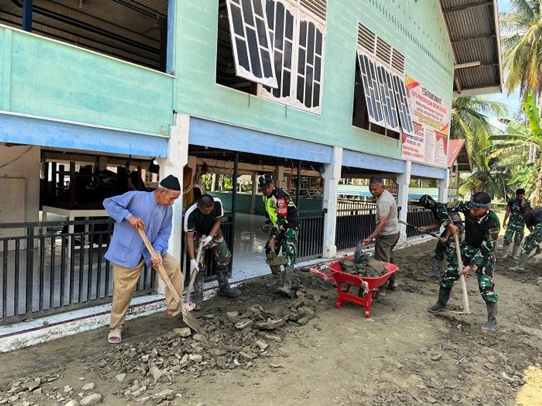 - 45 personel TNI dan warga bersinergi dalam pembersihan meunasah.