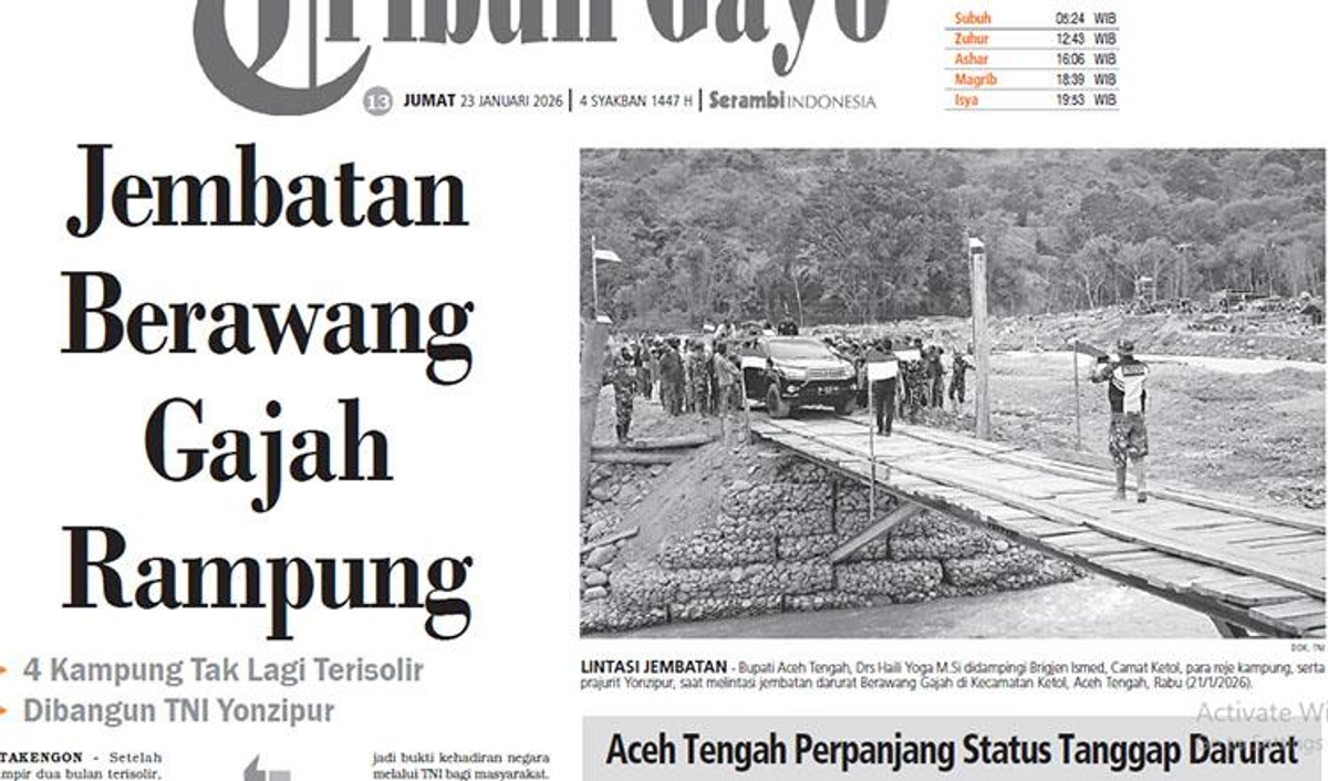 Empat kampung di Kecamatan Ketol, Aceh Tengah, kini kembali tersambung setelah jembatan darurat Berawang Gajah rampung. Jembatan ini dibangun oleh TNI Yonzipur dengan dukungan masyarakat dan BNPB, mengakhiri isolasi selama dua bulan akibat bencana banjir.