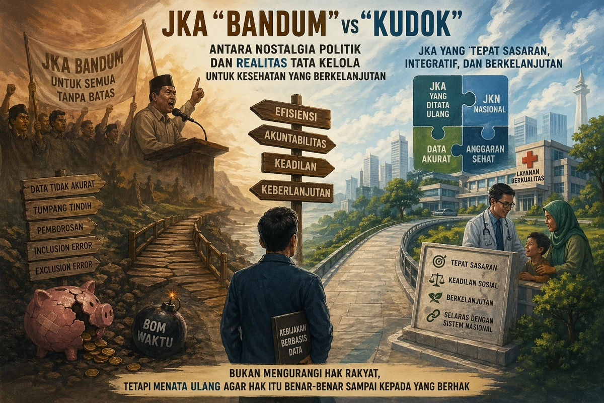 Debat mengenai Jaminan Kesehatan Aceh (JKA) yang sering disebut sebagai 'bandum' versus 'kudok' bukan sekadar perdebatan kebijakan kesehatan. Ini adalah pertarungan antara romantisme politik masa lalu dan kebutuhan rasional tata kelola pemerintahan hari ini. Narasi yang berkembang cenderung simplistik dan mengabaikan realitas fiskal serta kerangka sistem kesehatan nasional.