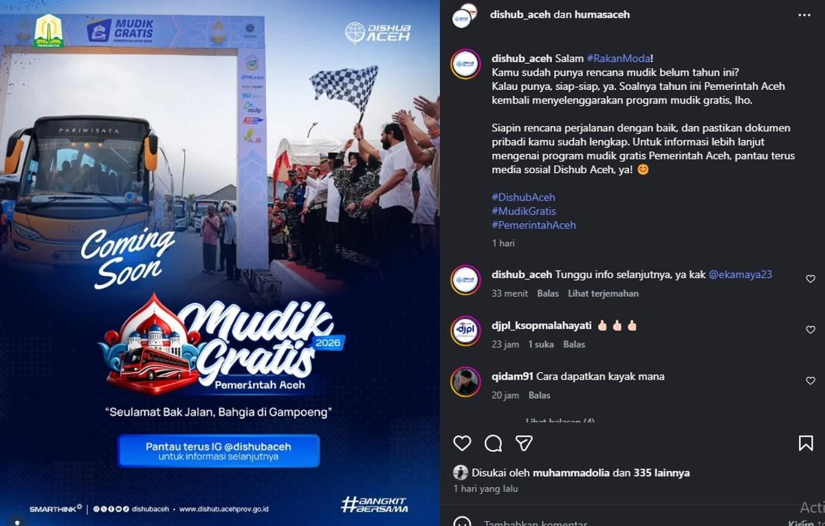 Antusiasme publik terhadap program ini terlihat dari respons warganet di kolom komentar unggahan tersebut. Banyak masyarakat yang menanyakan cara pendaftaran hingga rute mudik yang akan dilayani, menandakan tingginya minat dan harapan terhadap keberlanjutan program ini.