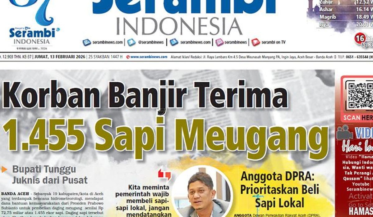 Korban banjir di Aceh menerima bantuan daging meugang sebesar 1.455 ekor sapi dari Presiden Prabowo Subianto. Bantuan ini akan dibagikan kepada korban bencana di 19 kabupaten/kota di Aceh. Bupati menunggu Juknis dari Pusat untuk penyaluran bantuan.
