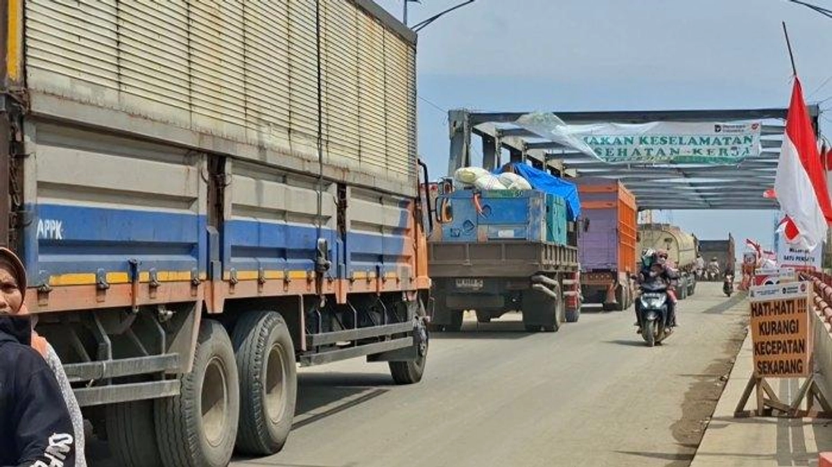 - Antrean kendaraan sempat mencapai lebih dari 1 kilometer, didominasi truk besar.