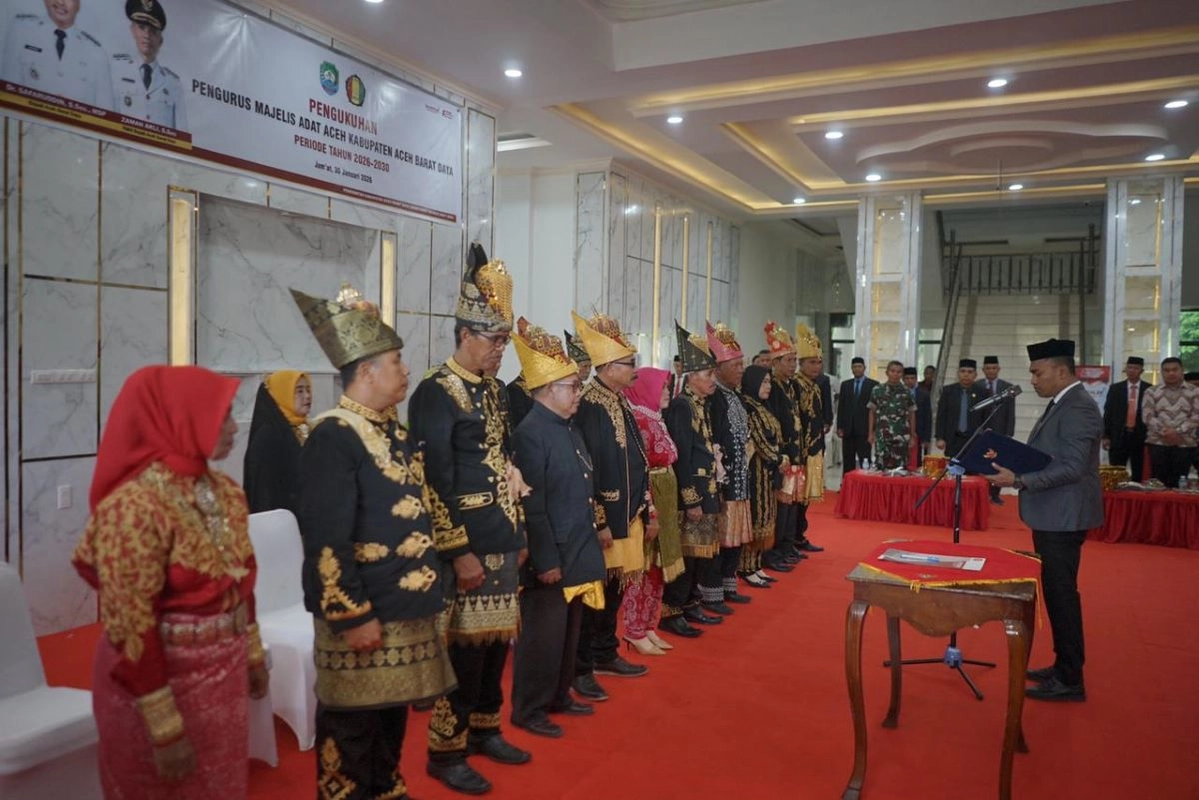 Bupati Aceh Barat Daya (Abdya), Safaruddin, melantik kepengurusan Majelis Adat Aceh (MAA) Kabupaten Abdya periode 2026–2030 di lobi Kantor Bupati, Jumat, 30 Januari 2026. Dalam seremoni tersebut, Sabirin SY didapuk sebagai Ketua MAA Abdya, didampingi H. Darul Arkam sebagai Wakil Ketua.