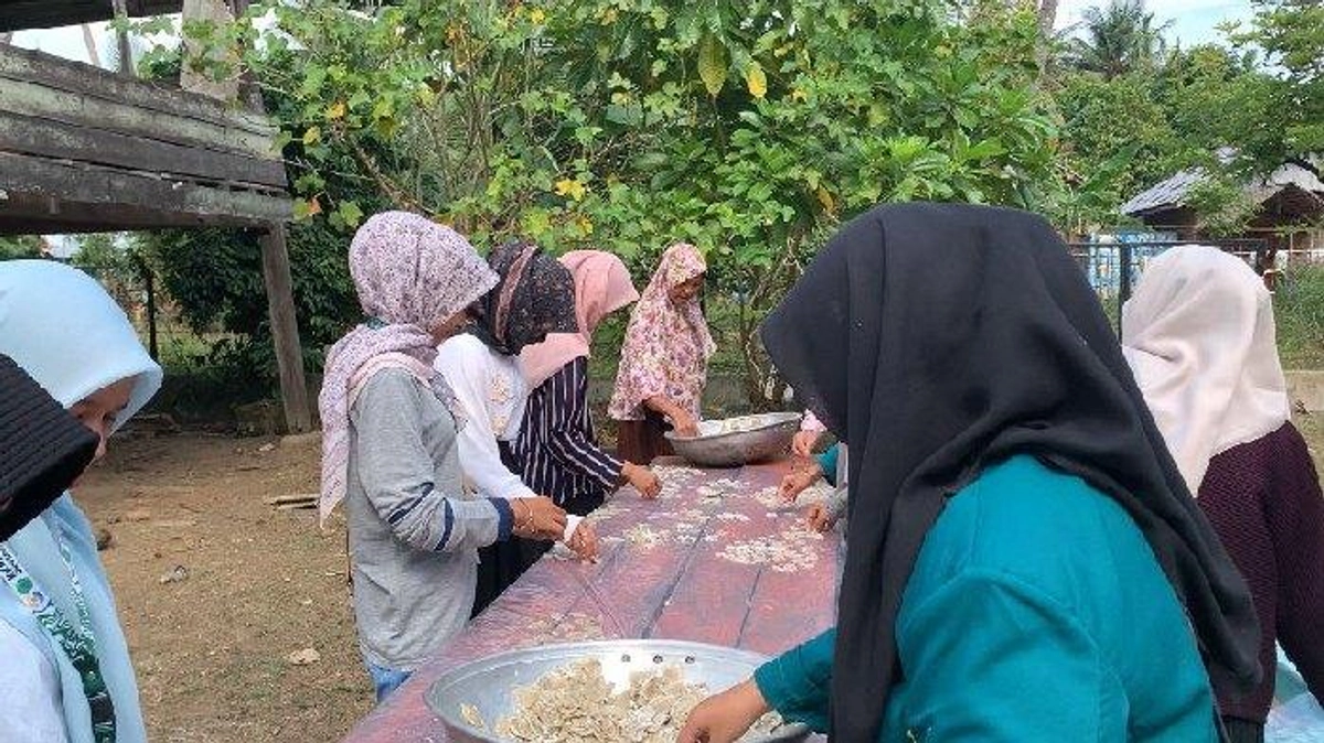 Desa Mata Mamplam, yang mayoritas penduduknya petani tambak dan nelayan, menjadi lokasi pelatihan ini. Mahasiswa KKM memberikan teori dan pendampingan langsung, mulai dari teknik pemisahan daging ikan, pencampuran adonan, hingga proses pengeringan yang higienis.