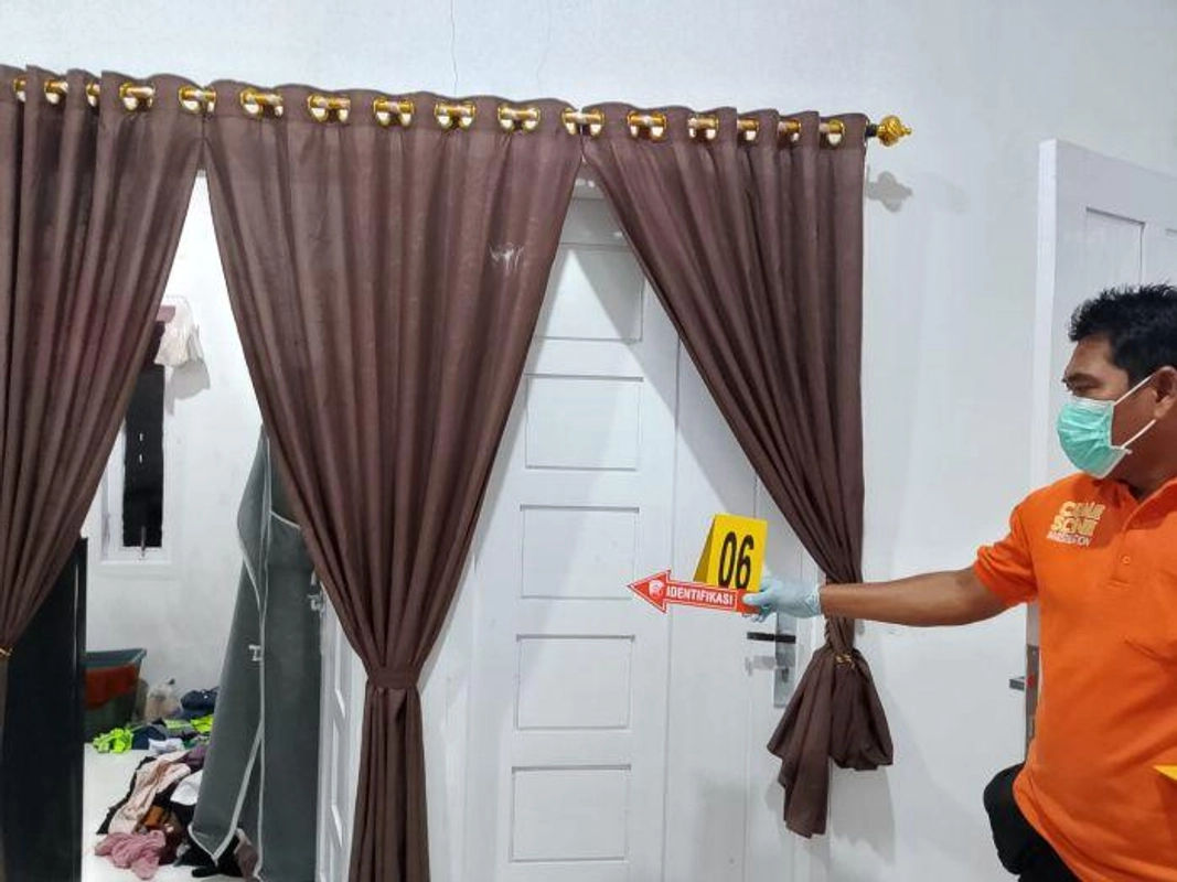 - Petugas telah melakukan olah TKP dan menemukan jendela kamar rusak, namun pintu utama tidak menunjukkan tanda-tanda paksaan.