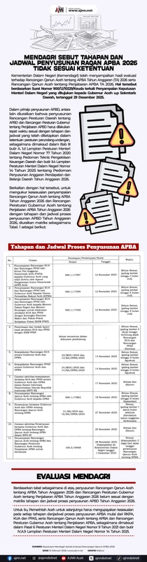 - Dampak jangka panjang yang signifikan jika tahapan penyusunan Raqan APBA 2026 tidak sesuai.