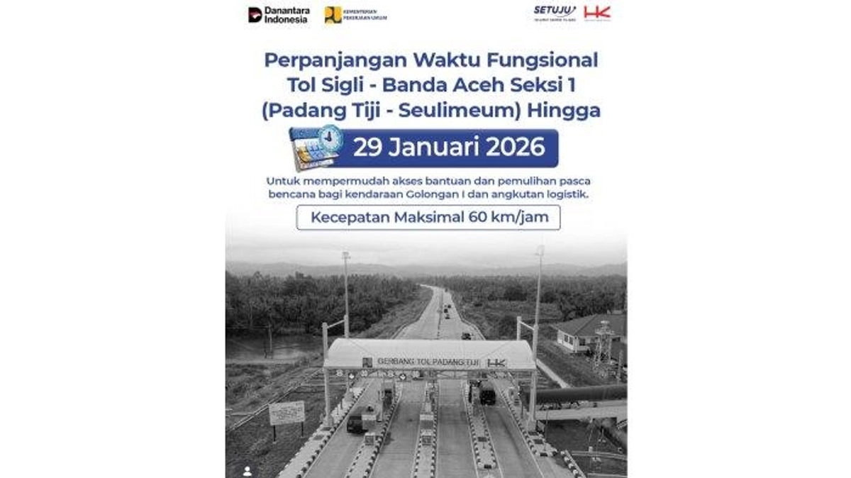 PT Hutama Karya (HK) kembali memperpanjang operasional ruas tol Padang Tiji-Seulimeum hingga 29 Januari 2026. Langkah ini bertujuan untuk mendukung penyaluran bantuan dan pemulihan pascabencana di Aceh, sejalan dengan perpanjangan status darurat bencana oleh Pemerintah Aceh.