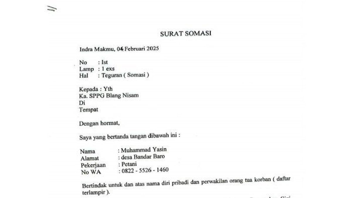 Orang tua korban keracunan massal dari menu Makan Bergizi Gratis (MBG) di Kecamatan Indra Makmu, Aceh Timur, telah melayangkan somasi kepada Satuan Pelayanan Pemenuhan Gizi (SPPG) Blang Nisam. Langkah hukum ini diambil 14 hari setelah insiden yang merenggut keceriaan puluhan bayi hingga remaja di wilayah tersebut.