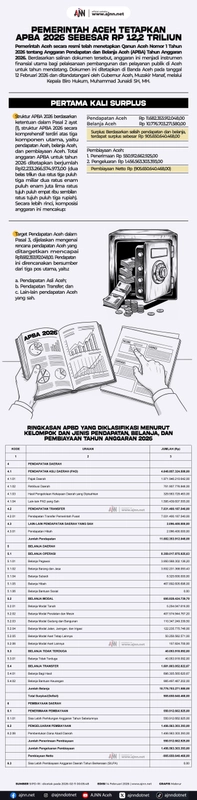 Pemerintah Aceh telah menetapkan Anggaran Pendapatan dan Belanja Daerah (APBD) tahun 2026 sebesar Rp 12,2 triliun. Ini merupakan langkah penting dalam pengelolaan keuangan daerah yang akan mempengaruhi berbagai sektor di Aceh. APBD 2026 ini diharapkan dapat mendukung pembangunan infrastruktur, pendidikan, dan kesehatan di Aceh.