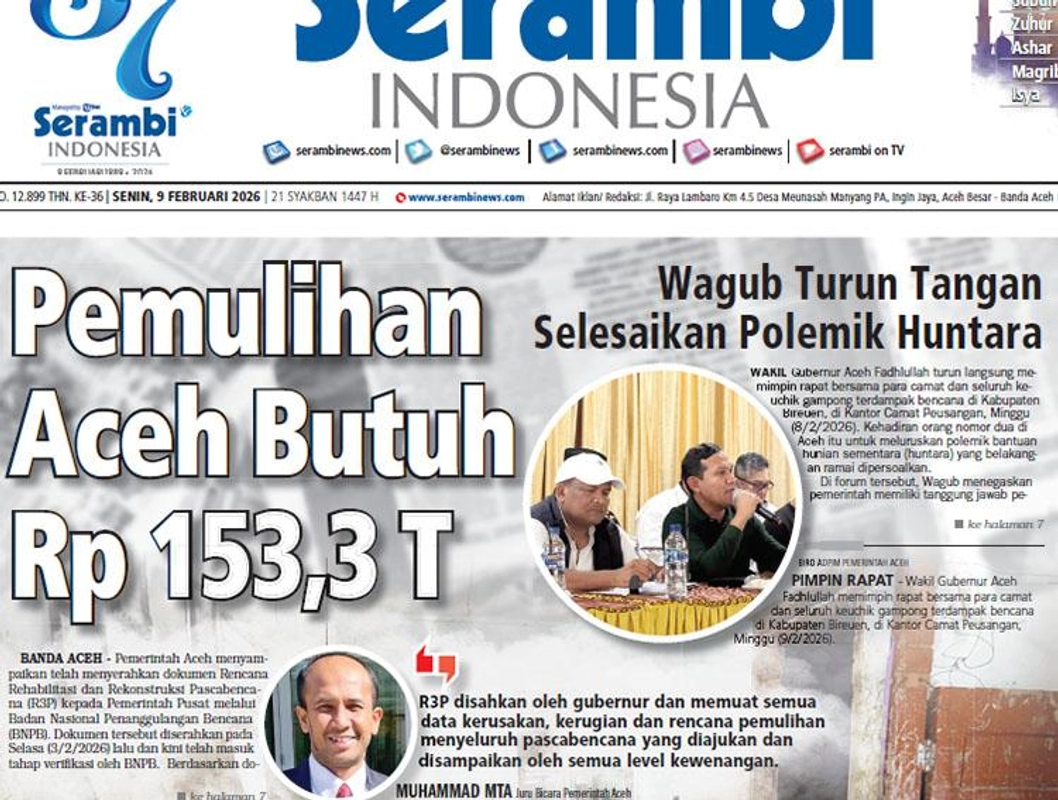 - Total kebutuhan anggaran pemulihan Aceh pascabencana banjir dan tanah longsor diperkirakan mencapai Rp 153,3 triliun.