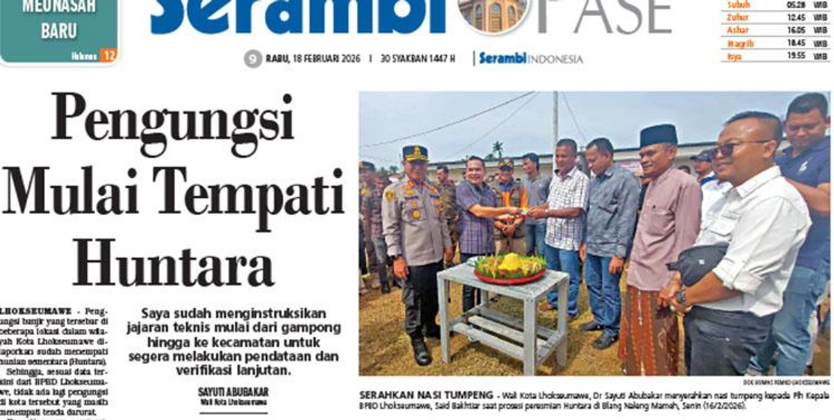 Pengungsi banjir di Kota Lhokseumawe mulai menempati hunian sementara (Huntara) setelah penyerahan 67 unit oleh Wali Kota Lhokseumawe, Sayuti Abubakar. Acara seremonial penyerahan kunci huntara berlangsung di Gampong Blang Naleung Mameh, Kecamatan Muara Satu, Senin (16/2/2026).