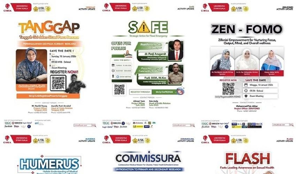 CIMSA Fakultas Kedokteran Universitas Syiah Kuala (FK USK) menggelar rangkaian kegiatan edukatif dan pengembangan kapasitas pada 17-18 Januari 2026. Kegiatan ini merupakan bagian dari program magang Newcomers CIMSA dan berfokus pada isu kesehatan masyarakat, kebencanaan, penelitian, kesehatan mental, kesehatan seksual dan reproduksi, gizi pascabencana, serta Global Health.