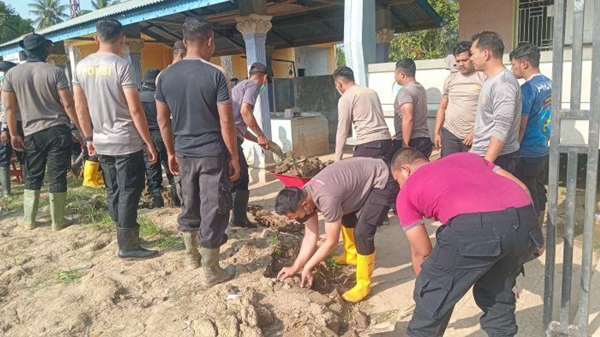 Polres Bireuen turun tangan membantu membersihkan fasilitas umum tersebut. Puluhan personel Polri bekerja bahu-membahu menggunakan peralatan sederhana seperti sekop, sapu, dan ember untuk mengangkat endapan lumpur.