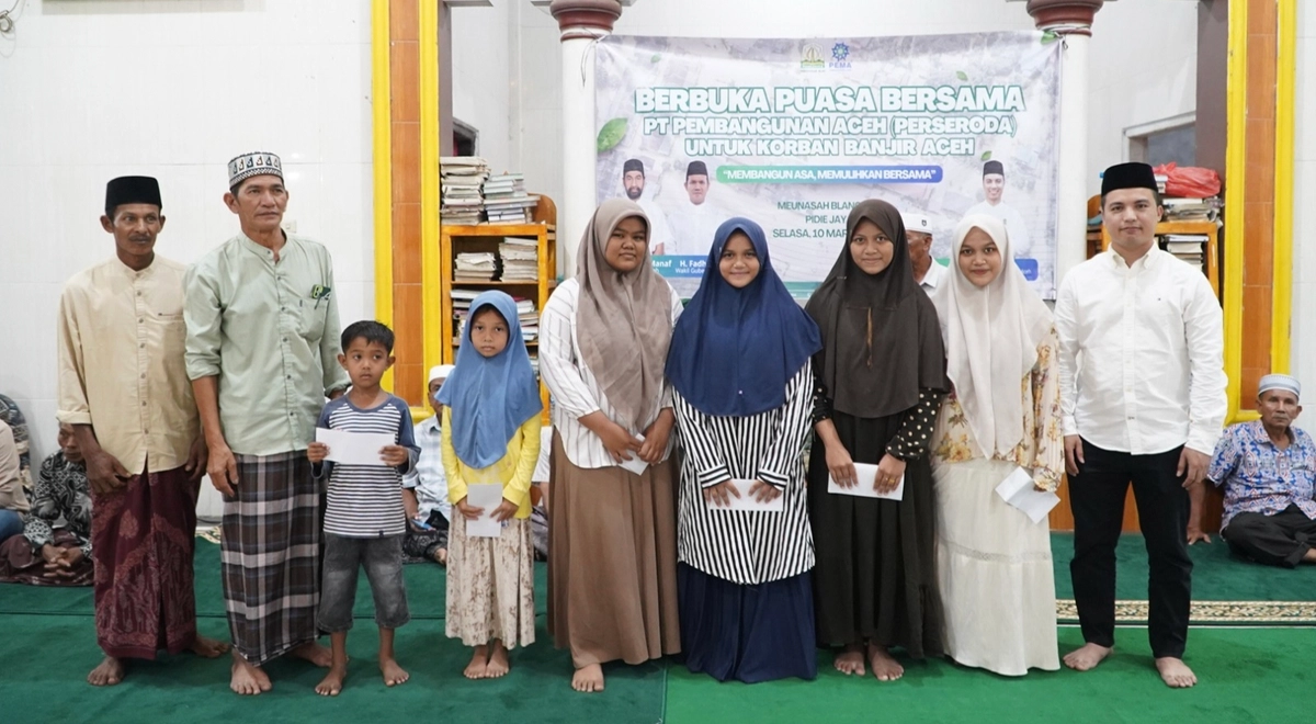PT Pembangunan Aceh (Perseroda) atau PEMA menggelar kegiatan buka puasa bersama masyarakat terdampak banjir di Gampong Meunasah Blang Cut, Pidie Jaya. Kegiatan ini menjadi momen kebersamaan sekaligus bentuk kepedulian perusahaan terhadap masyarakat yang masih dalam proses pemulihan pascabanjir yang terjadi sejak November 2025 lalu.