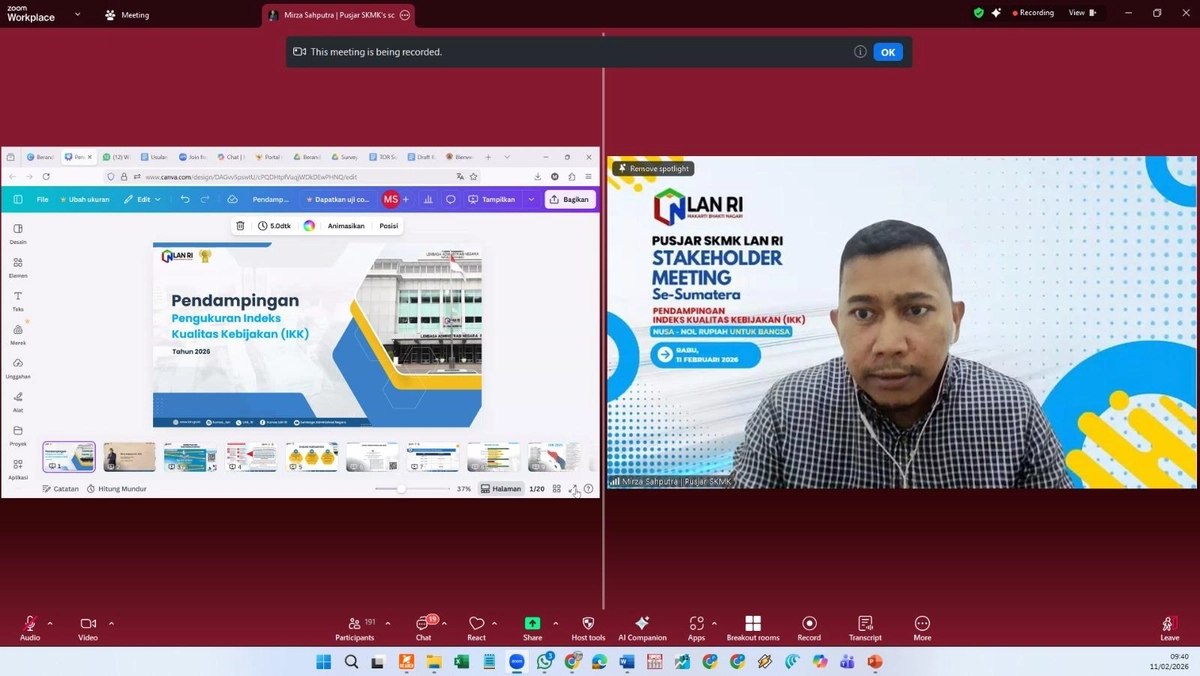Pusat Pembelajaran Strategi Kebijakan Manajemen Kinerja (Pusjar SKMK) Lembaga Administrasi Negara Republik Indonesia (LAN RI) menggelar stakeholder meeting secara daring untuk menguatkan pendampingan pengukuran Indeks Kualitas Kebijakan (IKK) tahun 2026 bagi pemerintah daerah, termasuk Aceh.