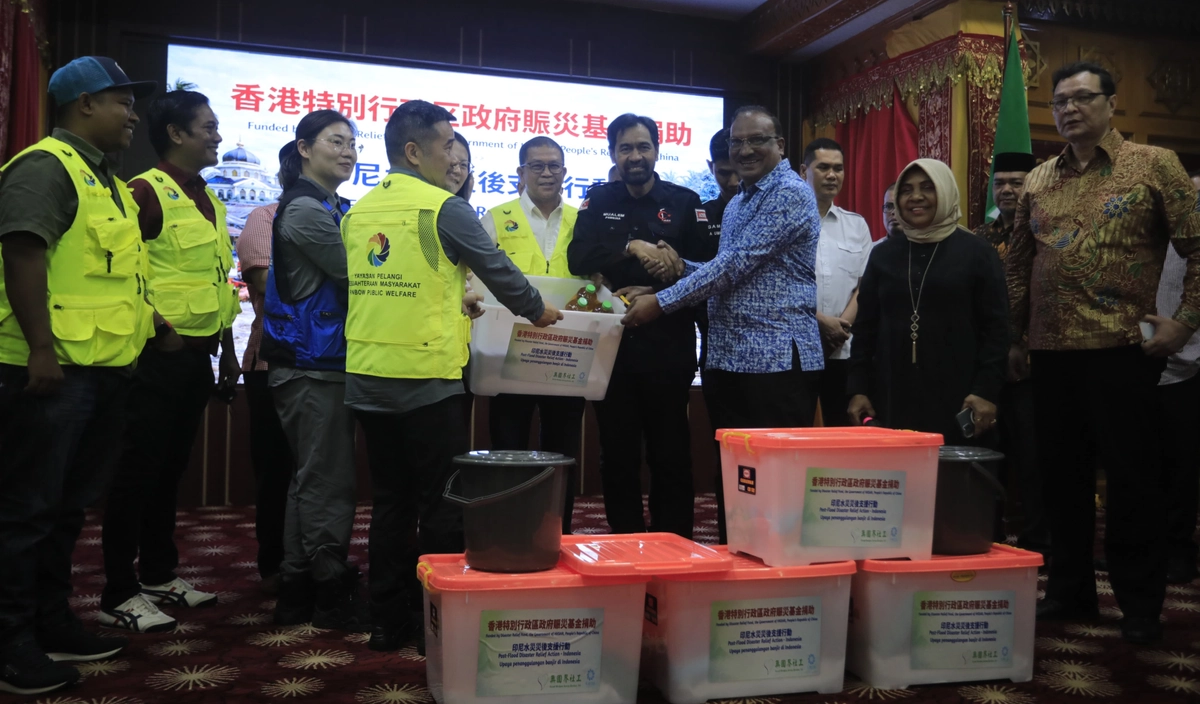 Ribuan warga Aceh yang terdampak bencana hidrometeorologi menerima bantuan kemanusiaan dari relawan internasional asal Tiongkok dan Malaysia. Bantuan tersebut diserahkan secara simbolis kepada Gubernur Aceh, H. Muzakir Manaf, di Restoran Meuligoe, Kompleks Meuligoe Gubernur Aceh, Sabtu (18/4/2026).