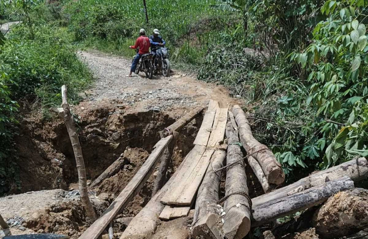 - Jalan provinsi hampir putus, hanya bisa dilalui kendaraan roda dua dengan pengawasan ketat.