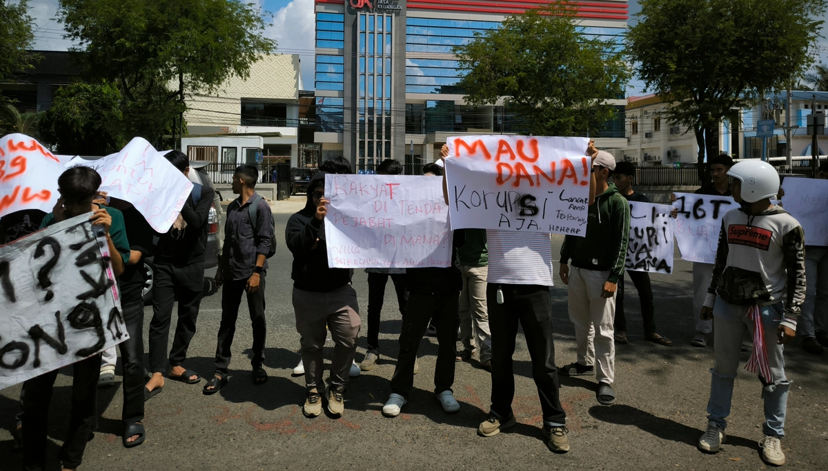 Koordinator Aksi GAMPATA, Saputra Ariga, menyatakan pemangkasan program yang berkaitan langsung dengan kebutuhan masyarakat miskin menunjukkan rendahnya keberpihakan pemerintah terhadap rakyat kecil. Aksi unjuk rasa dilakukan di Kantor DPRA, Banda Aceh, Senin, 9 Maret 2026.