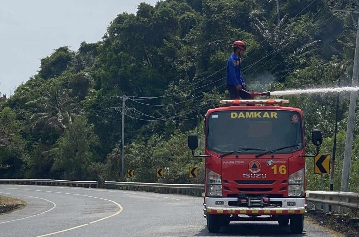 - Api sempat menjalar hingga ke bahu Jalan Nasional Banda Aceh–Meulaboh