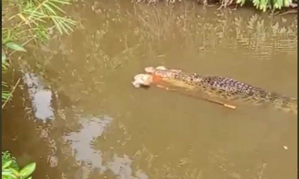 - Warga desa kemudian berdatangan ke lokasi kejadian dan menemukan Jusmitawati di mulut buaya, membuat mereka histeris.
