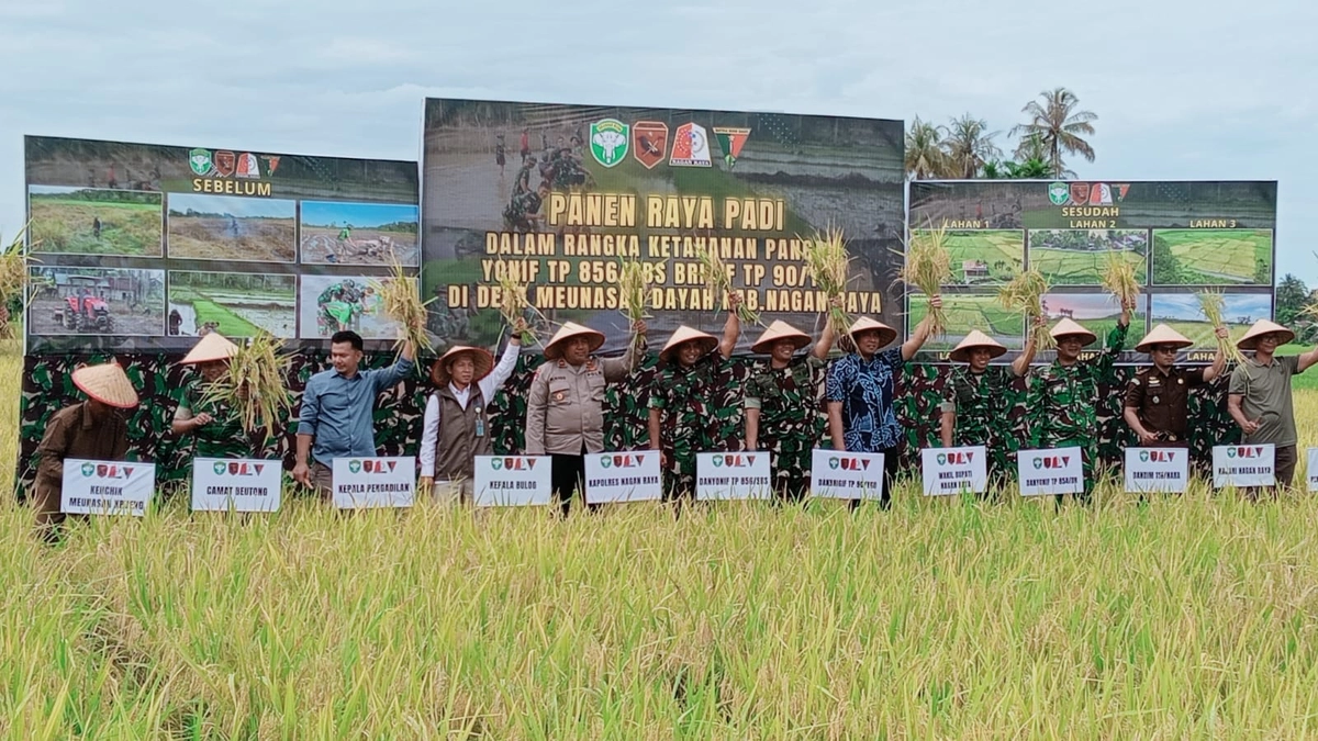 Panen raya padi varietas MR 337 berhasil digelar di Gampong Meunasah Dayah, Kecamatan Beutong, Kabupaten Nagan Raya. Kegiatan ini merupakan hasil sinergi antara TNI, Dinas Pertanian dan Peternakan Kabupaten Nagan Raya, serta masyarakat setempat dalam upaya memperkuat ketahanan pangan menuju swasembada nasional.