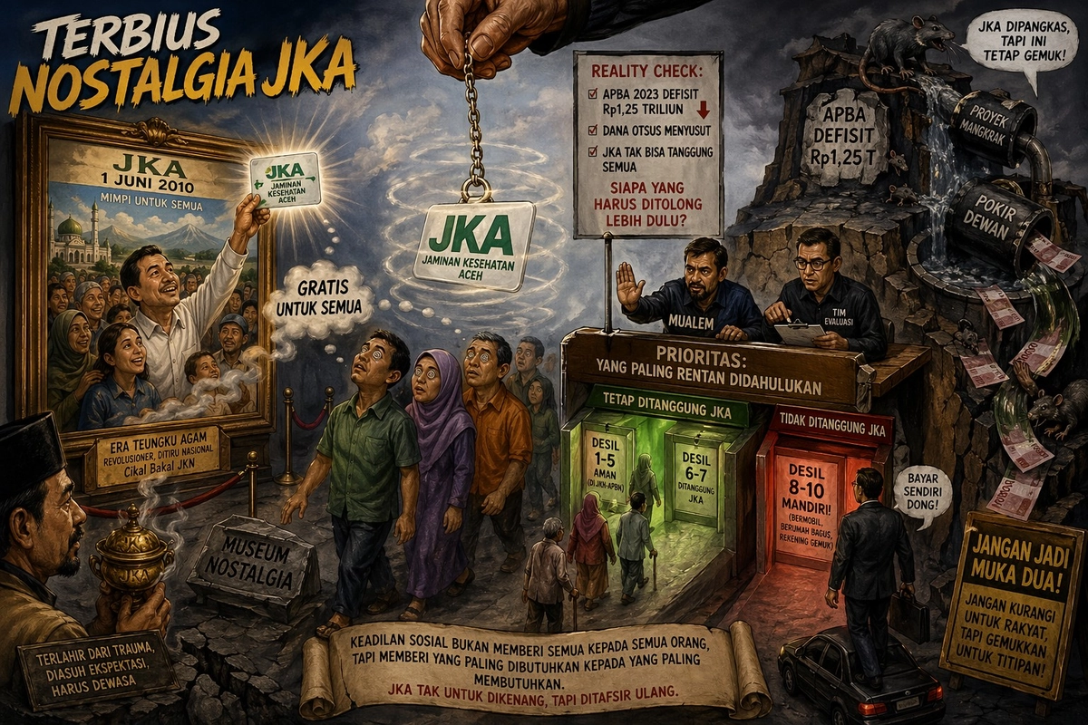 Program Jaminan Kesehatan Aceh (JKA) yang diluncurkan pada 1 Juni 2010 oleh Gubernur Irwandi Yusuf kini mengalami perubahan signifikan. Mulai 1 Mei 2026, 823.914 jiwa dari desil 8-10 akan dikeluarkan dari tanggungan JKA. Kebijakan ini diambil untuk menjaga keberlanjutan program di tengah keterbatasan anggaran APBA 2023 yang defisit Rp1,25 triliun.