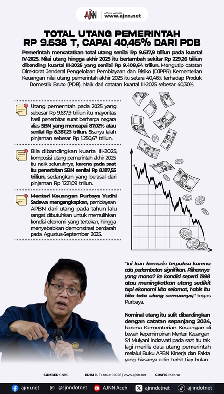 - Utang pemerintah mencapai 40,46% dari PDB Aceh.