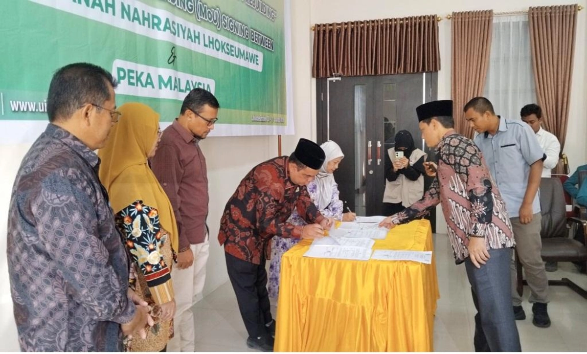 - MoU tingkat universitas ditandatangani oleh Wakil Rektor III UIN SUNA Lhokseumawe, Dr Darmadi, bersama Presiden PEKA Malaysia, Siti Taniza Toha.