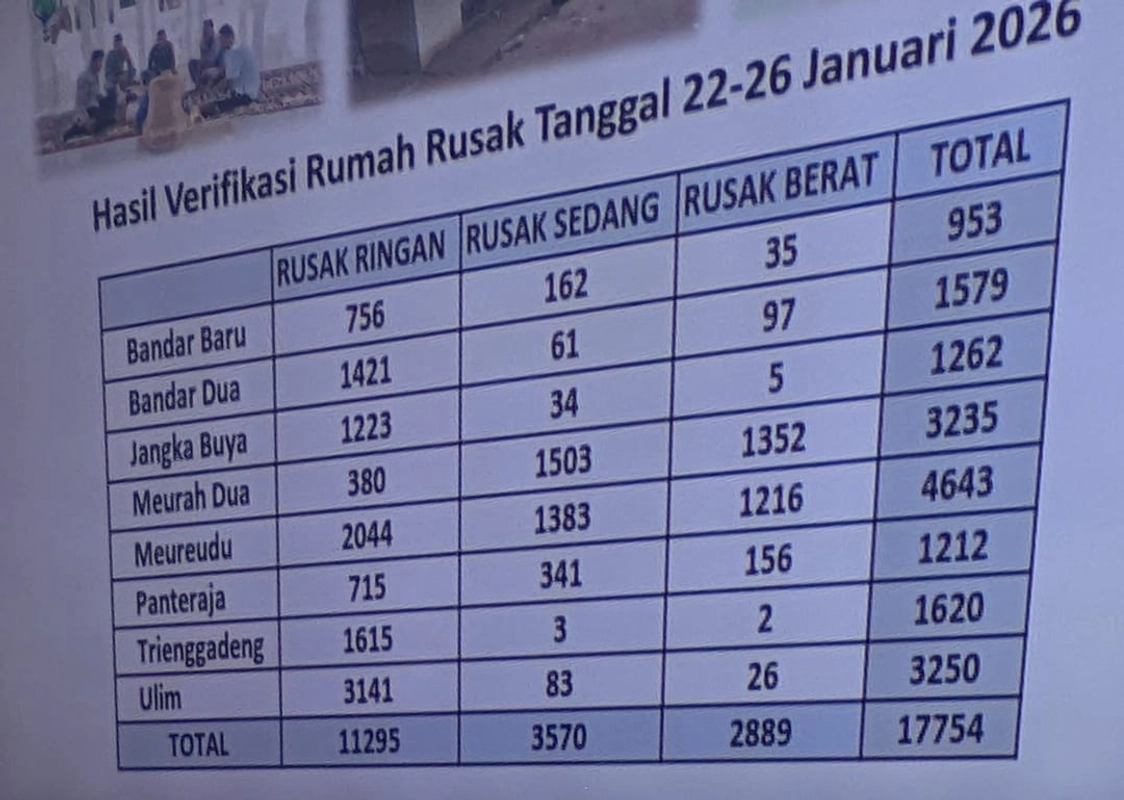Pemerintah Kabupaten Pidie Jaya membuka masa uji publik dan sanggahan data korban banjir mulai 2 hingga 5 Februari 2026. Masyarakat yang terdampak namun belum tercantum dalam data hasil verifikasi diberi kesempatan untuk mengajukan keberatan atau melengkapi data melalui kantor geuchiek di gampong masing-masing. Data hasil uji publik ini akan menjadi dasar penetapan keabsahan penerima bantuan pascabencana.