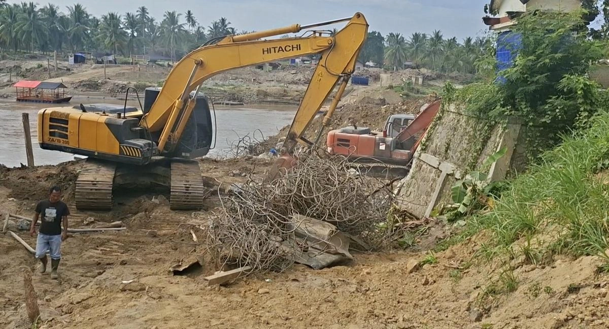 - Persiapan: Alat berat telah mulai membersihkan area sekitar jembatan yang rusak.