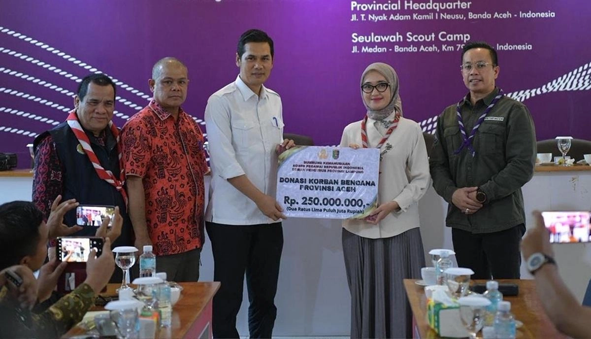 Wakil Gubernur Lampung, Jihan Nurlela, menyerahkan bantuan kemanusiaan senilai Rp500 juta untuk korban bencana banjir bandang dan tanah longsor di Aceh. Bantuan ini diserahkan kepada Sekretaris Daerah Aceh, M. Nasir, di Banda Aceh, Jumat (23/1/2026).