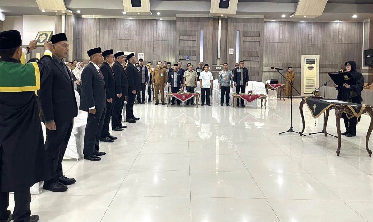 Wali Kota Banda Aceh, Illiza Sa’aduddin Djamal, melantik lima pejabat pimpinan tinggi pratama (eselon II) di lingkungan Pemerintah Kota Banda Aceh. Prosesi pengambilan sumpah jabatan berlangsung di Aula Mawardy Nurdin, Balai Kota, pada Senin (20/4/2026).